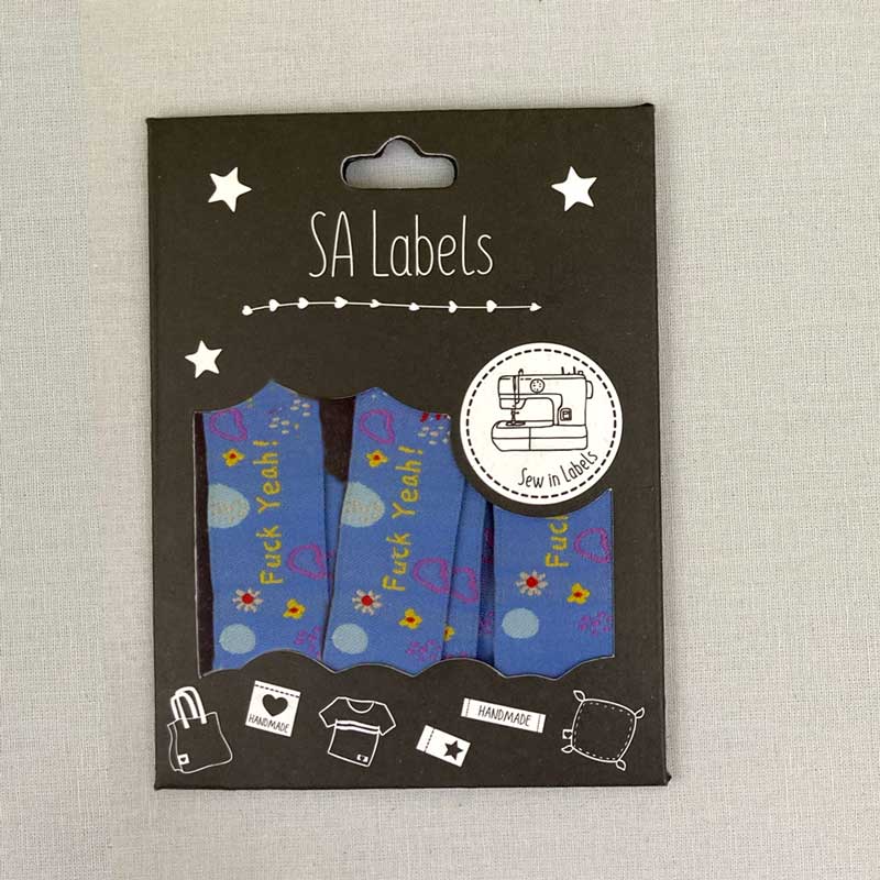 These labels are center folded with a 1 cm seam allowance for a nice tidy finish. They can be sewn inside your garments for a nice tucked away little surprise or proudly shown off stitched into the garment's outside seam.